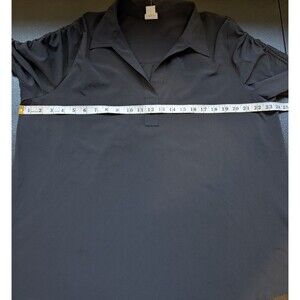 Chico's Zenergy Polo Popover Top Black Ruched Sleeve UPF 50+ Casual US 16/18