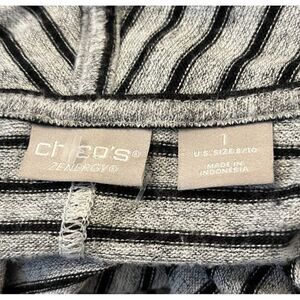 Chicos Zenergy SZ 1 Medium Open Front Cardigan Gray Black Striped Sweater Relaxe