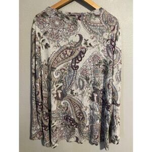 Chico's Zenergy Shirt Womens Extra Large Gray Paisley Long Sleeve Stretch Knit