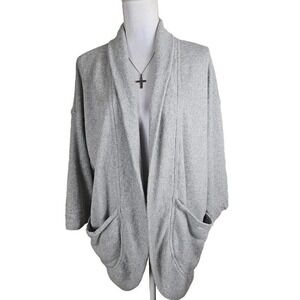 Chicos Zenergy Size XL 3 Gray Open Front Knit Sweater Cardigan With Pockets.