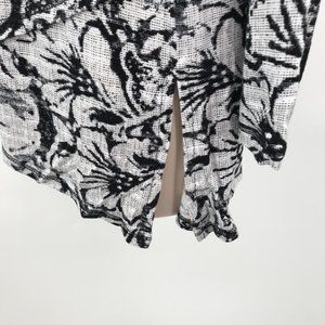 Features: Beautiful black and white floral print, quality stretchy material, round neck, side slits