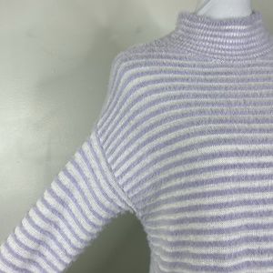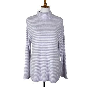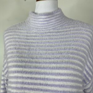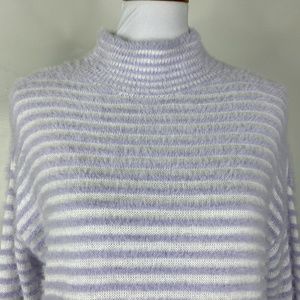 Chico's Zenergy Lilac and White Striped Fuzzy Mock Neck Sweater Sz. 1