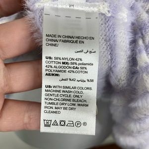 -white and purple stripe-purple is fuzzy knit, white is more of a sheer knit