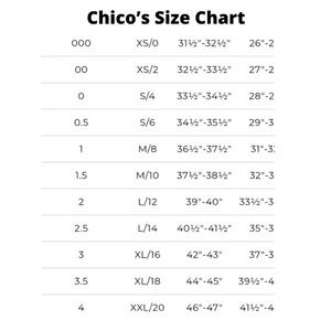 chicos Sz. 1 is similar to a Medium-please check measurements to ensure fit