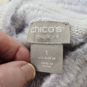Chicos Zenergy Striped Fuzzy Pastel Turtleneck Sweater in 1 (8)