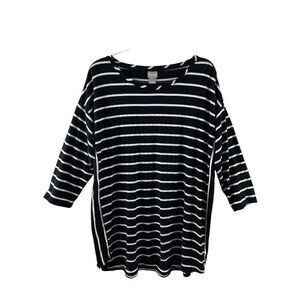 Chico's Zenergy Striped Tunic Size 2 (12/14) Black White Rayon Stretch Casual