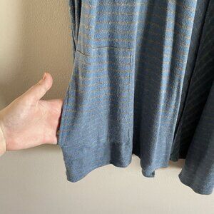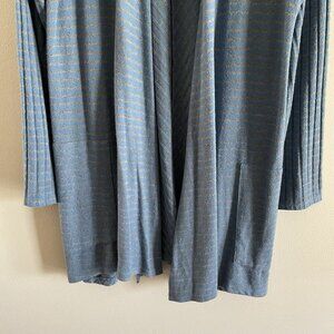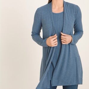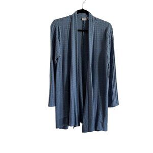 Chicos Zenergy Women Sz 1 US 8/10 Blue Gray Longline Open Front Plush Chevron Striped Cardigan.