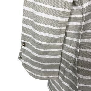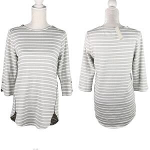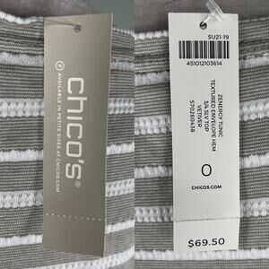 Chico's Zenergy Textured Top S 4-6 Gray White Stripe 0 Envelope Hem New