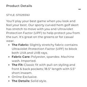 Description: Chico’s Zenergy UPF Curved Hem Skort
