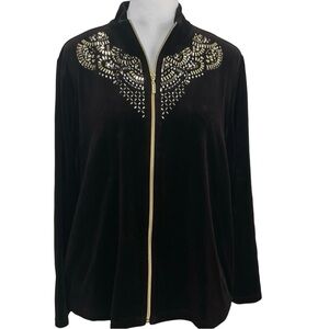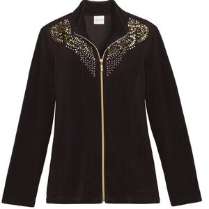 Chico’s Zenergy Velour Deep Cocoa Embellished Zip Jacket