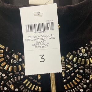 Chico’s Zenergy Velour Deep Cocoa Embellished Zip Jacket Size 3 New With Tags