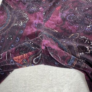 Chico’s Zenergy Velour Velvet Paisley Printed Boho Pull On Purple Pants