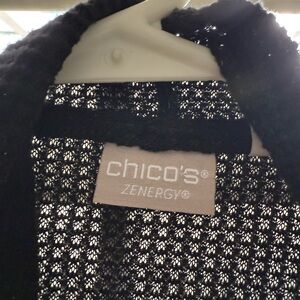 Chico's knit sweater in black and white. Stylish and comfortable. Great for everyday or after yoga or gym.
