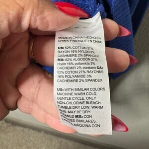 Chico’s Zenergy Women’s 1 (M) Blue Button Shoulder Sweater Cotton Cashmere Blend
