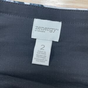 Chico's Zenergy Womens 2 Black Floral Cozy Chic Skinny Stretch Crop Leggings