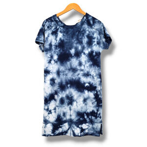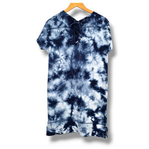 Chico's Zenergy Women's Boho Star Tie Dye Lattice Tie Mini Dress Blue Size 0