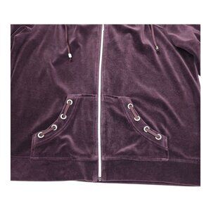 This luxurious velvet jacket by Chico's Zenergy is crafted for a comfortable and stylish fit. Its rich purple hue and zip-up design with eyelet details make it a versatile addition to any wardrobe. Ideal for layering on cooler days, it provides both warmth and elegance.