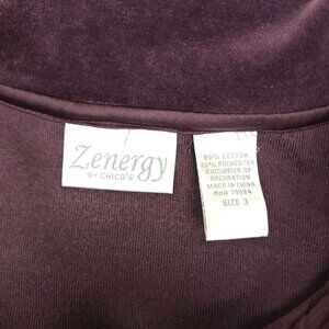 Chicos Zenergy Womens Purple Velvet Zip-Up Jacket Size 3
