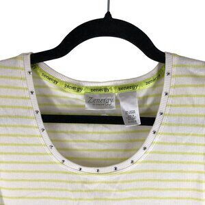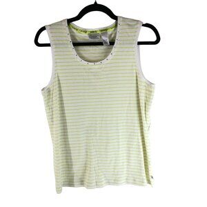 Chicos Zenergy Womens Striped Stud Accent Tank Top White Yellow XL/16 (Chicos 3)