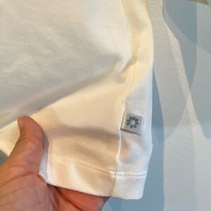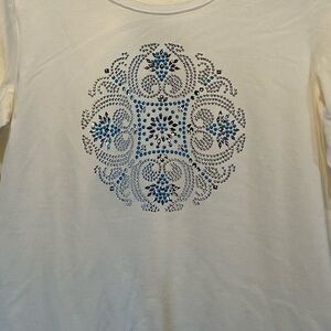 Chico’s Zenergy 3/4 Sleeve Embellished Top. Color White. Size 1 (M 8-10). Measurements added in images. 5% spandex. Made in Indonesia. Used like new.