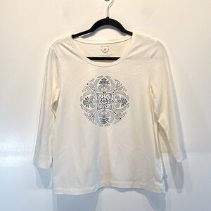 Chico’s Zenergy Women's Top Size 1 US M Cream Soft Knit 3/4 Sleeve Embellished