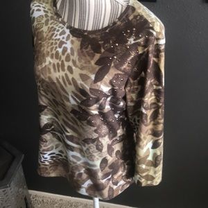 Sparkly jewels throughout. Chico’s zenergy size 1 (equals a generous sized medium). Gently loved in great preowned condition.