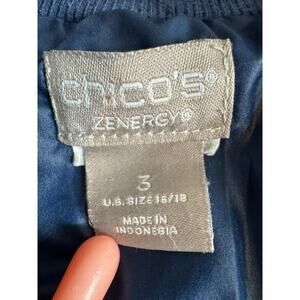 Chico's Zenergy jacket blue quilted knit cuffs & adjustable hemline Sz 3 US XL