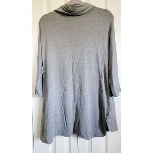 Chico's Zenergy 2 Gray Funnel Neck Top Size L Half Slv Embroidered Side Slits