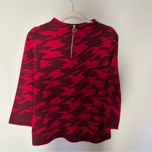 Chico's Zip-Back Mock-Neck Sweater Red Camp Print Size 2 (Large)