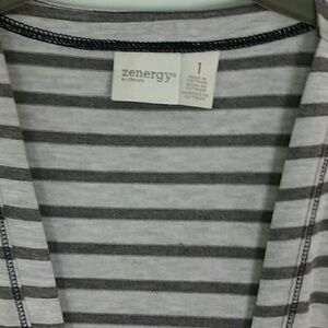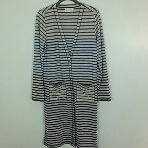 Zynergy by Chico's Gray Blue Striped Radley Duster Long Cardigan