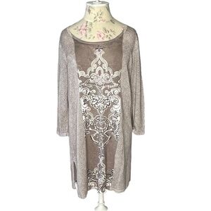 Chicos abstract printed Blouse Long Sleeves Tunic Style Tan White 1 Medium NWT