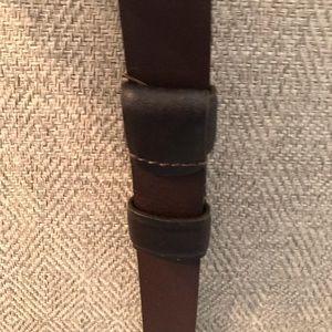 Chico’s adjustable belt brown leather with beautiful silver and brass buckle. Size S/M. No flaws.