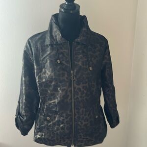 Chico’s animal Print nylon windbreaker leopard front zipper jacket sz 1 / S / 8