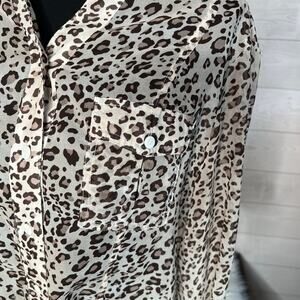 Chico's animal print semi-sheer button front blouse Size Medium