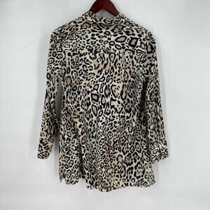 Chicos animal print tunic length button down shirt size 0, 4-6 cheetah pockets