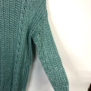 Chico’s aqua semi sheer crochet sweater drop shoulder long sleeve M (Chico’s 1)