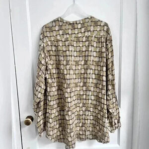 Chico’s art to wear relaxed printed top with mother of Pearl buttons Like New