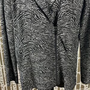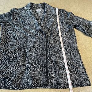 Chico's black and silver metallic tiger print asymmetrical zip front jacket sz 1