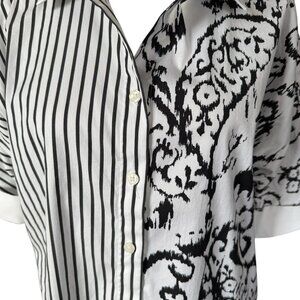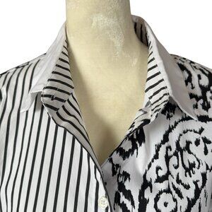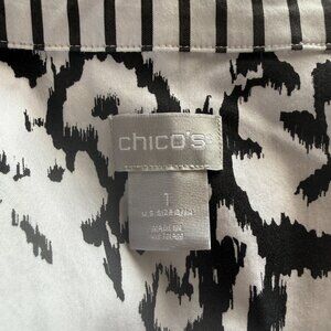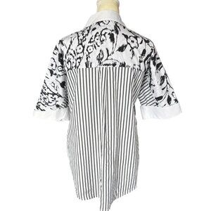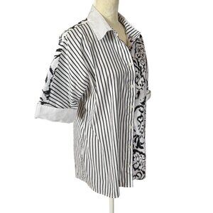 Chico's black and white striped and floral short sleeve button down shirt size 1