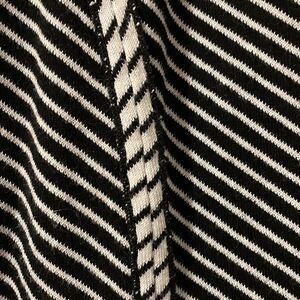 Chico’s black and white stripe soft knit one button jacket with lapels size Medium. Diagonal striping and princess seams make this figure flattering. Soft cotton rayon silk blend knit. Wear with any solid color or with all black or all white underneath.
