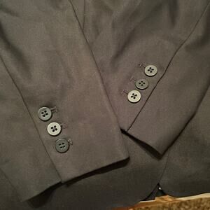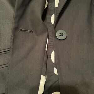 Chico's black blazer lined with white polka dots Sz Med which is Chico's Sz 1 EUC