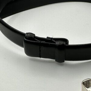 Chico’s black leather adjustable size M/L hook silver tone buckle belt