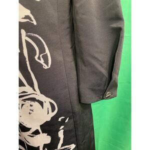 Chico’s black Rose-Print Topper size 0(4-6 US) long sleeves, front pockets, concealed zipper closure with snaps and jewel neckline. Abstract floral designs create a monochromatic work of art on the front of this rose-print topper. Shoulder pads. This dressy outer layer is just the thing for spring events and evenings out, giving you the lightweight warmth you need with dramatic style you love. The crossover sleeves are shaped by a fold at the cuff, beautifully finished with a polished metal button.