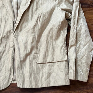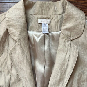 Chicos blazer. Tan with metallic sheen. Size 3. EUC. Lightweight. Pockets