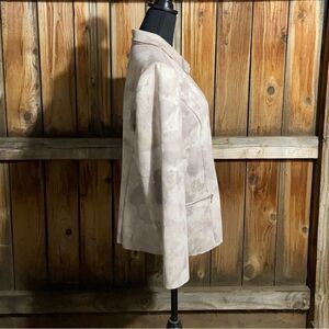 Chico’s blazer jacket brown tan geometric pockets zipper Large/2 FIRM on PRICE