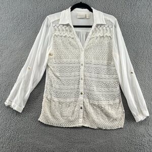 Chico’s blouse lace crochet boho rollup sleeves ivory size 1 medium