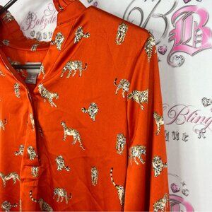 Chico's blouse leopards cheetahs cats Vibrant Orange Top with Leopard Print