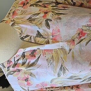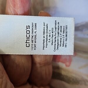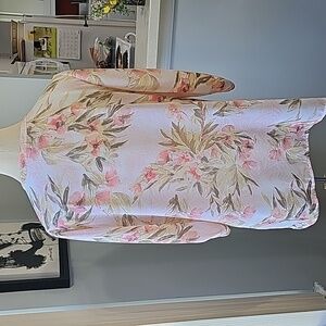 This is a very lovely blouse. pinks and yellow chiffon overlay. Runs large. Chicos 1. Pit to pit flat measurement is 22". sleeves are 12". Shoulders are 17". The top to bottom length is 26" in front of 31" in back. excellent condition and quality. Consider making a bundle and get an even better offer and discount shipping.
