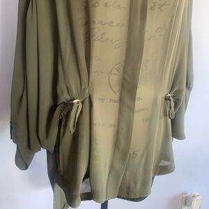 Chico’s blouse buttons down adjustable waist bat sleeves slide open on the sleeves hi-lo