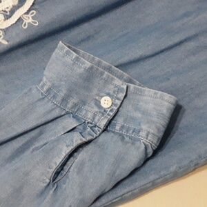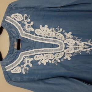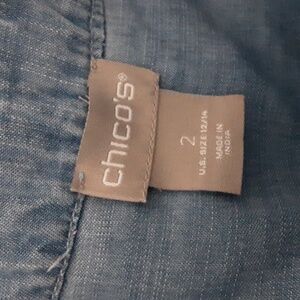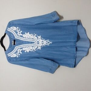 Chico's blouse women 2 chambray embroidered high and low blue casual boho Retro